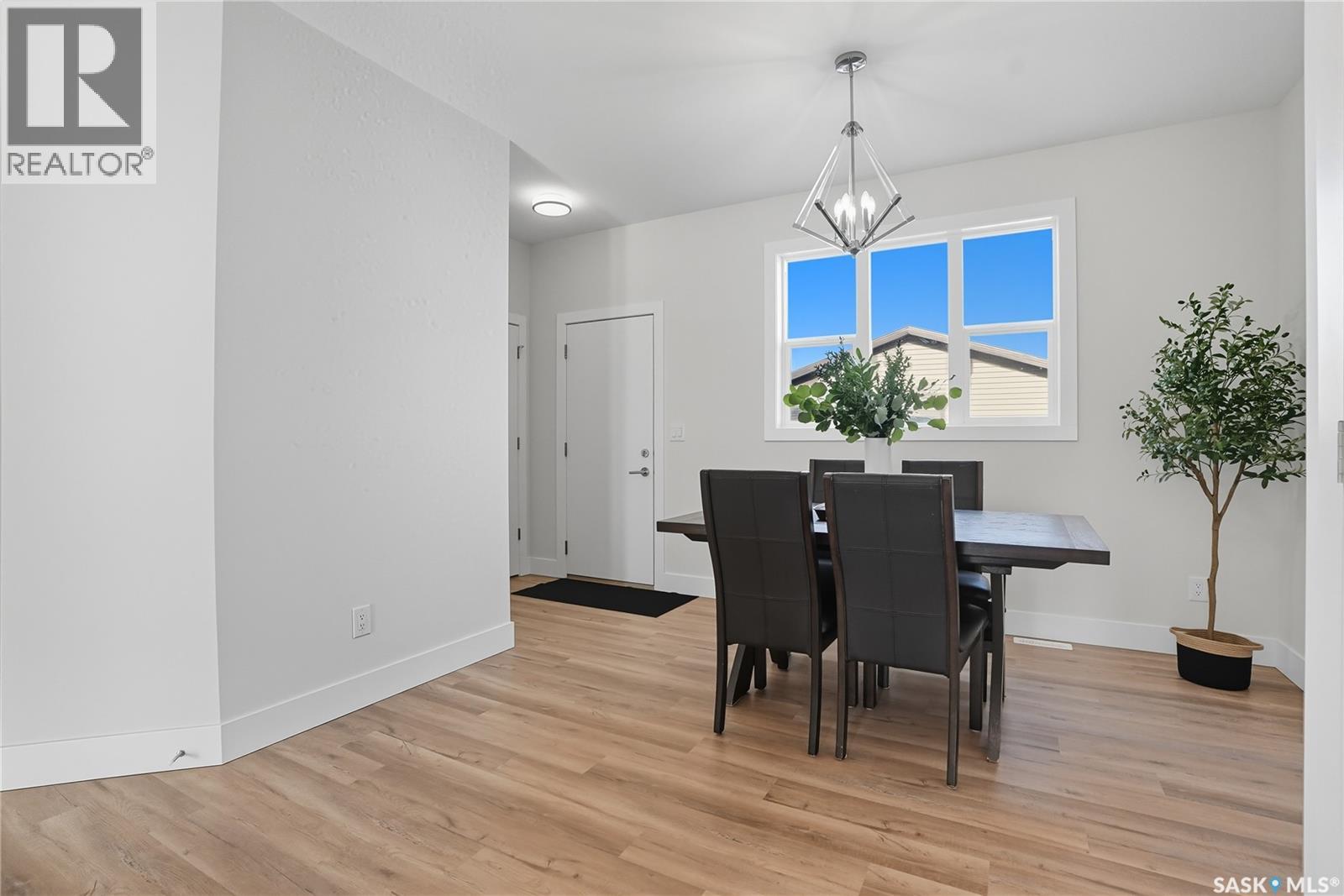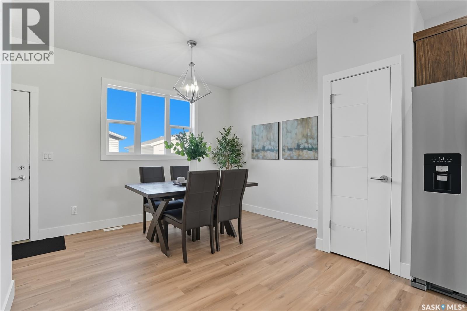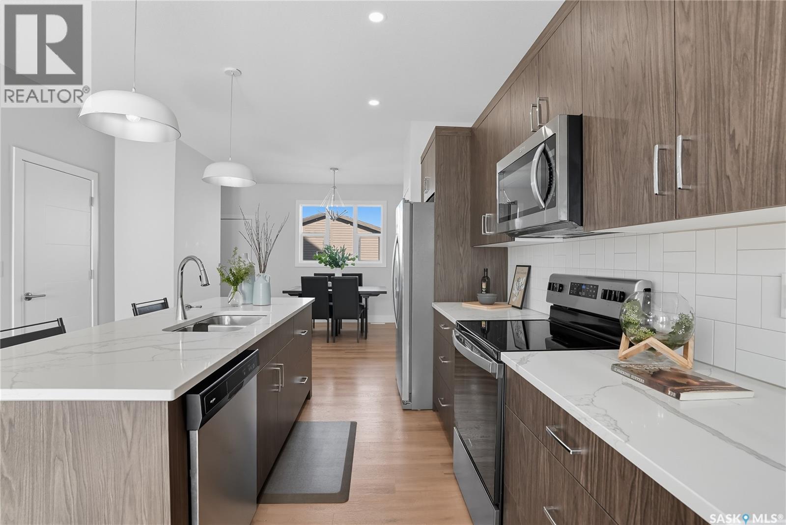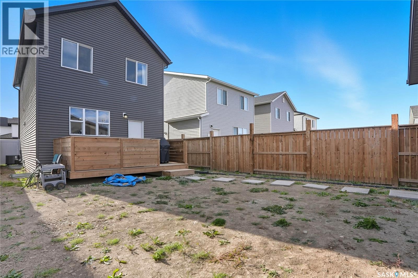 Welcome to 723 Henry Dayday Road, a stunning two-storey home that blends modern design with everyday comfort. Flooded with natural light, this home offers an inviting open-concept layout perfect for both family living and entertaining. Step inside to a stylish foyer with built-in bench seating that leads into the bright living room and contemporary kitchen, featuring quartz countertops, soft-close cabinetry, stainless steel appliances, and a large island with seating. The adjoining dining area offers the perfect gathering space, while a convenient two-piece powder room completes the main floor. Upstairs, you’ll find three spacious bedrooms, a full bathroom, and laundry for added convenience. The primary suite is a true retreat with a generous walk-in closet and an ensuite boasting dual vanities and a walk-in shower. A separate side entrance offers excellent potential for a future basement suite, ideal for guests or added income. Outside, enjoy a fully landscaped front yard with underground sprinklers, a fenced backyard, a back deck with natural gas BBQ hookup, and two car detached garage. Located in Aspen Ridge, one of Saskatoon’s most desirable new communities with quick access to amenities and the Chief Mistawasis Bridge. (id:4069)