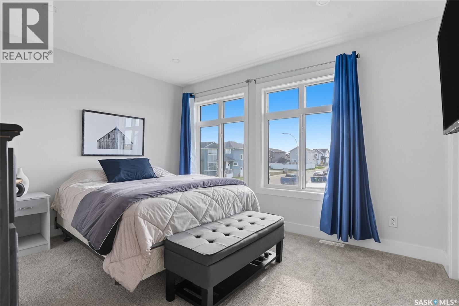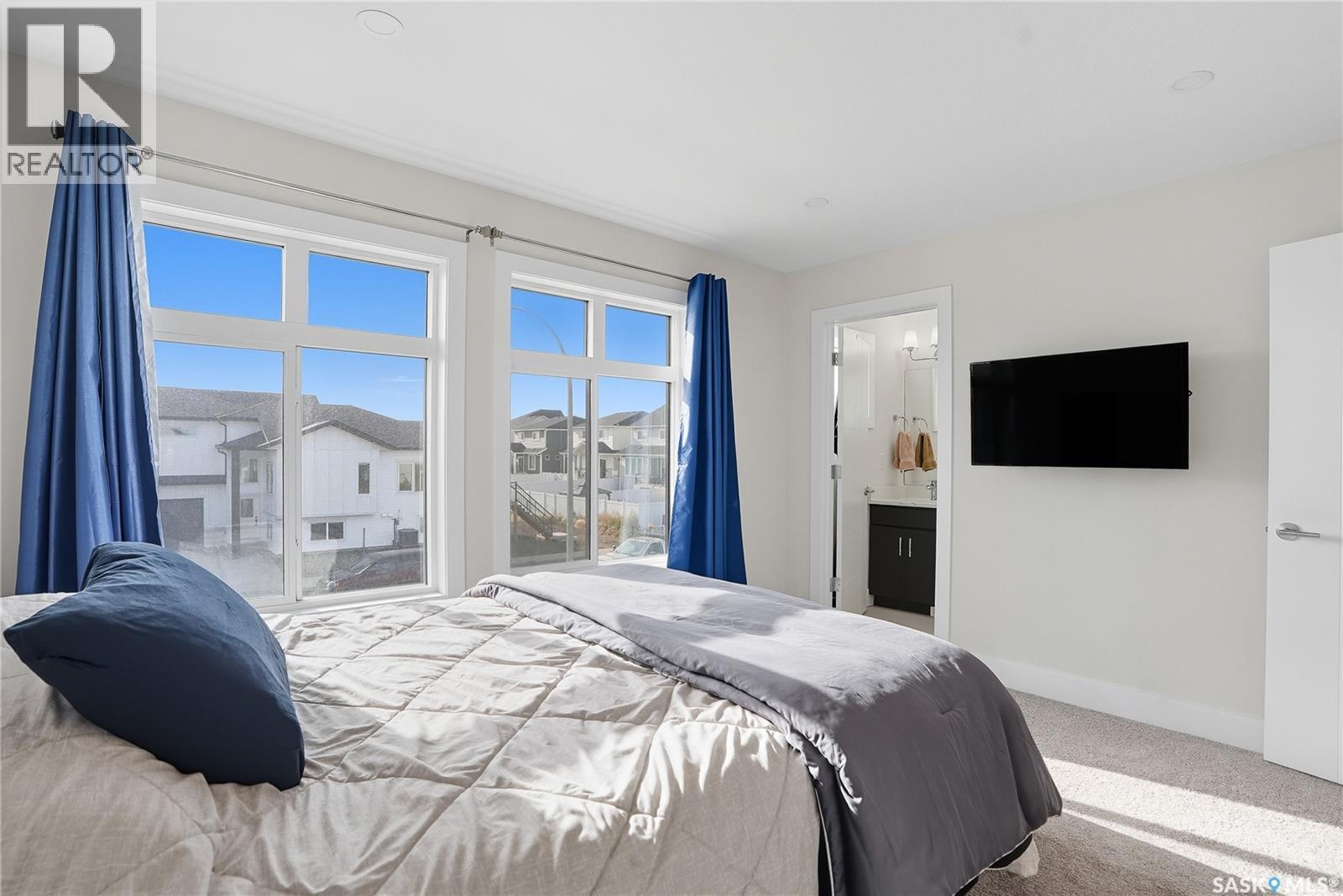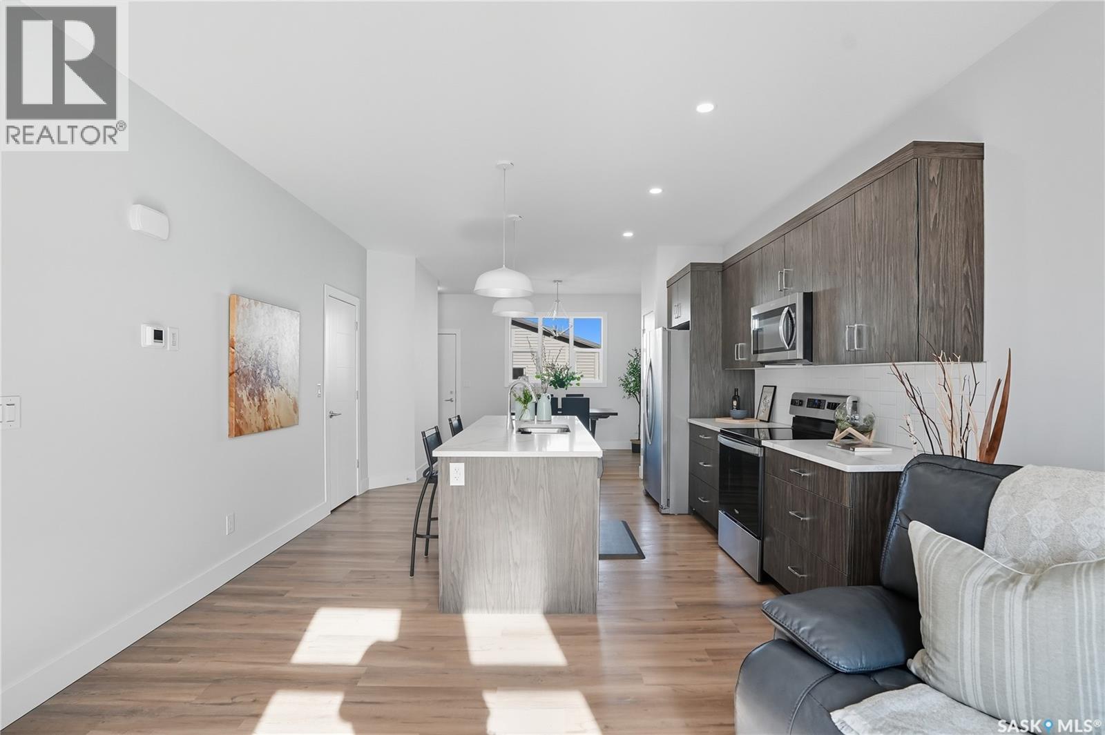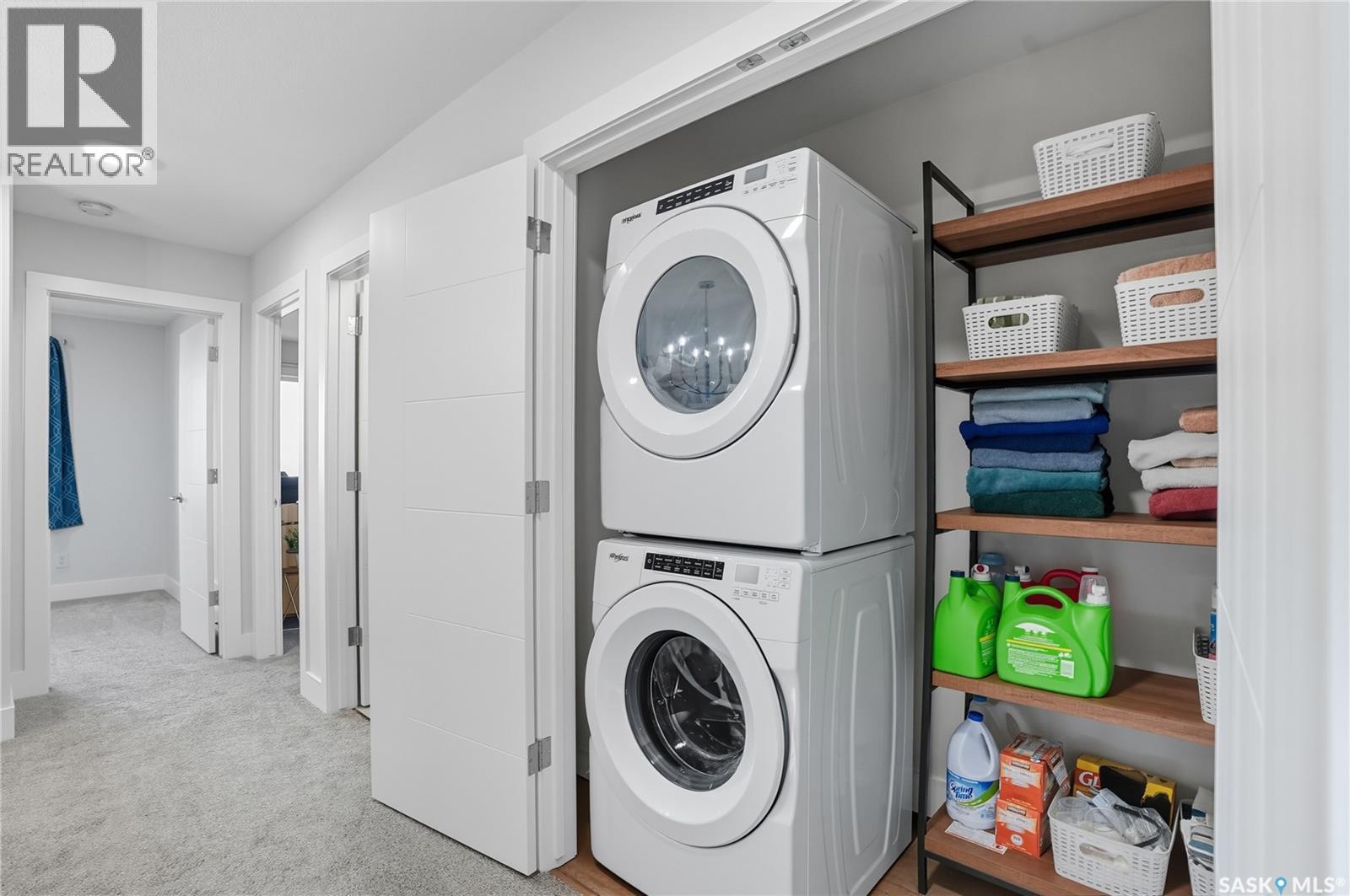 Welcome to 723 Henry Dayday Road, a stunning two-storey home that blends modern design with everyday comfort. Flooded with natural light, this home offers an inviting open-concept layout perfect for both family living and entertaining. Step inside to a stylish foyer with built-in bench seating that leads into the bright living room and contemporary kitchen, featuring quartz countertops, soft-close cabinetry, stainless steel appliances, and a large island with seating. The adjoining dining area offers the perfect gathering space, while a convenient two-piece powder room completes the main floor. Upstairs, you’ll find three spacious bedrooms, a full bathroom, and laundry for added convenience. The primary suite is a true retreat with a generous walk-in closet and an ensuite boasting dual vanities and a walk-in shower. A separate side entrance offers excellent potential for a future basement suite, ideal for guests or added income. Outside, enjoy a fully landscaped front yard with underground sprinklers, a fenced backyard, a back deck with natural gas BBQ hookup, and two car detached garage. Located in Aspen Ridge, one of Saskatoon’s most desirable new communities with quick access to amenities and the Chief Mistawasis Bridge. (id:4069)