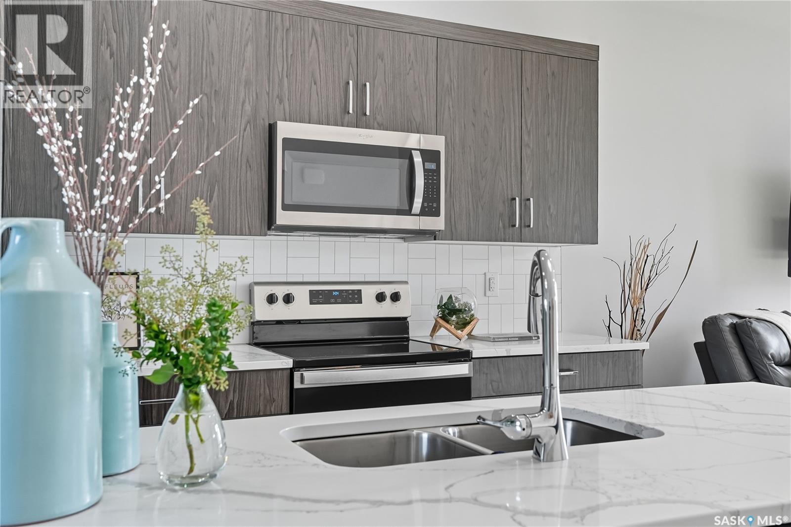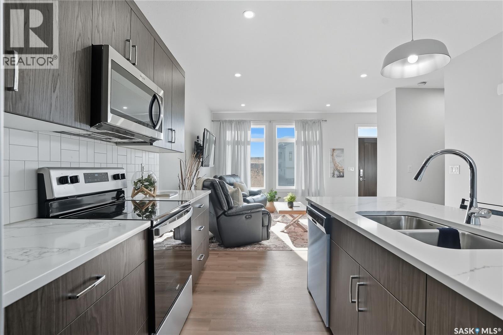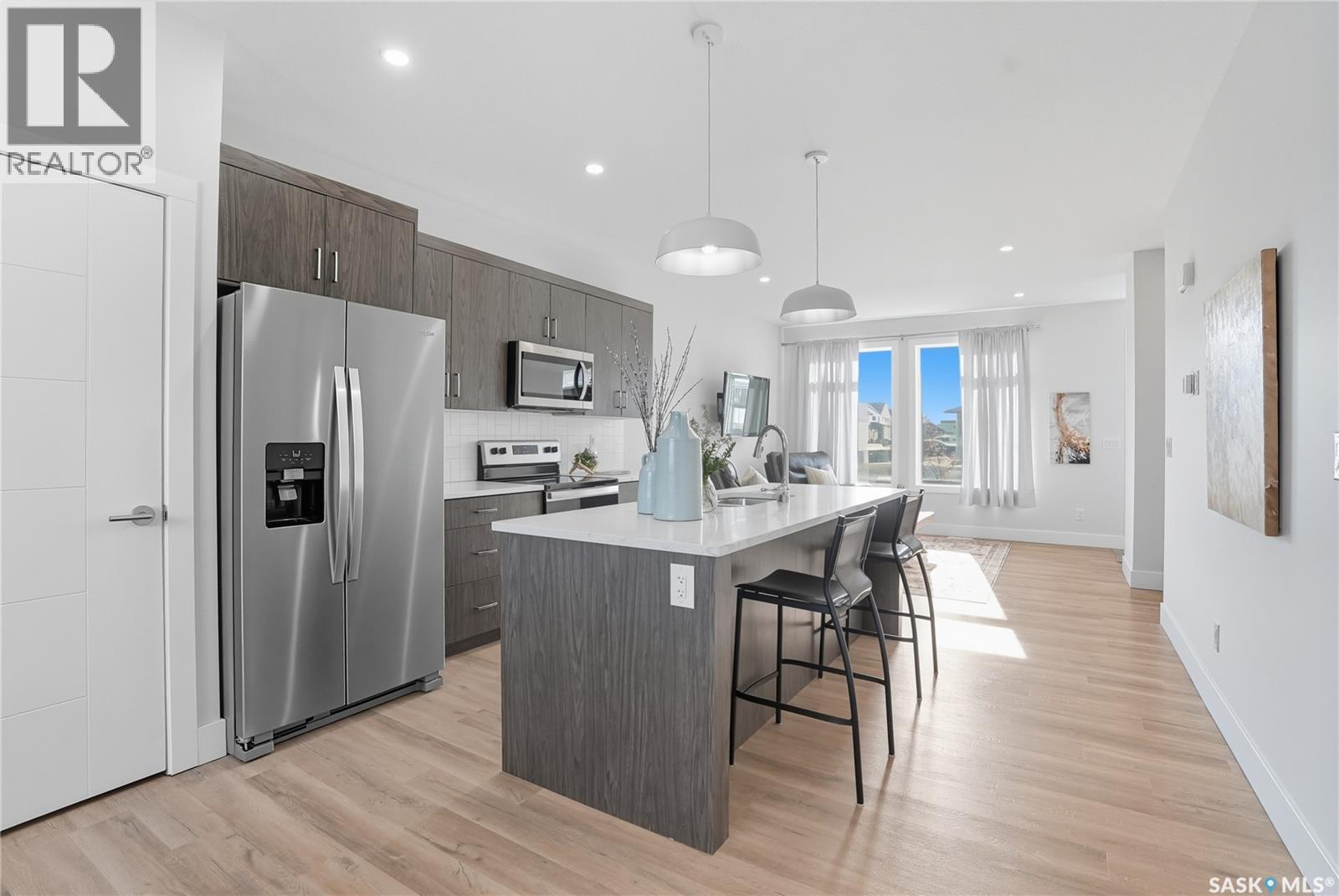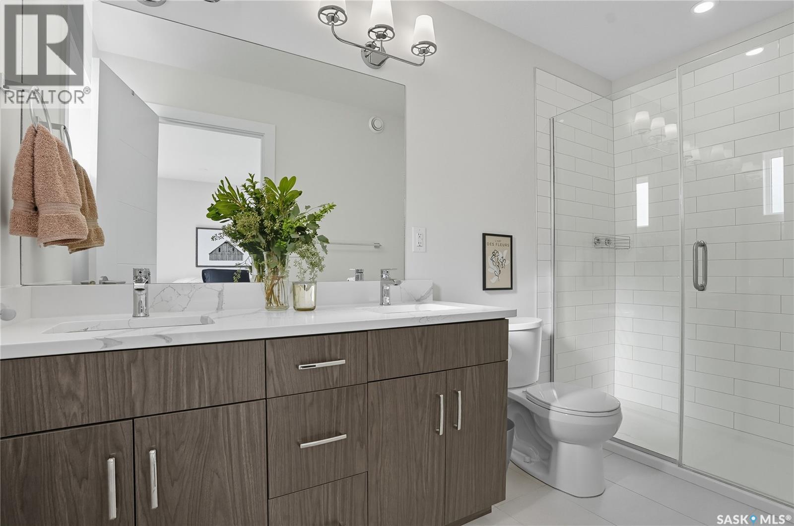 Welcome to 723 Henry Dayday Road, a stunning two-storey home that blends modern design with everyday comfort. Flooded with natural light, this home offers an inviting open-concept layout perfect for both family living and entertaining. Step inside to a stylish foyer with built-in bench seating that leads into the bright living room and contemporary kitchen, featuring quartz countertops, soft-close cabinetry, stainless steel appliances, and a large island with seating. The adjoining dining area offers the perfect gathering space, while a convenient two-piece powder room completes the main floor. Upstairs, you’ll find three spacious bedrooms, a full bathroom, and laundry for added convenience. The primary suite is a true retreat with a generous walk-in closet and an ensuite boasting dual vanities and a walk-in shower. A separate side entrance offers excellent potential for a future basement suite, ideal for guests or added income. Outside, enjoy a fully landscaped front yard with underground sprinklers, a fenced backyard, a back deck with natural gas BBQ hookup, and two car detached garage. Located in Aspen Ridge, one of Saskatoon’s most desirable new communities with quick access to amenities and the Chief Mistawasis Bridge. (id:4069)