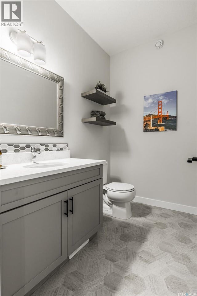 Welcome to 343 Stilling Manor in Saskatoon's Rosewood neighbourhood. Buyers, this home is exactly what you need! Built in late 2021 it’s practically brand new with the addition of the yard, fence, blinds, and appliances all completed. With 2000+ square feet of living space this two storey home is a great buy. The front entry way is spacious and has an built in bench beside the large entrance closet. The main floor living room dining room and kitchen are open concept and all overlook the west facing backyard. The kitchen has quartz countertops, high end stainless steel appliances, and a large pantry for storage. The fridge has 4 sections that can be changed from fridge to freezer, depending on your family's needs. On the main you’ll also find a powder room with a large vanity, and access to the insulated double attached garage. This second floor will surely impress! The large primary bedroom easily fits a king sized bed, there’s big east facing windows with Hunter Douglas blinds, and 2 walk in closets. The ensuite has a long vanity with drawers & doors to store your necessities, there's a separate tub and a tiled shower with seating. The water closet is separated at the end of the ensuite for privacy. A very thoughtful design that makes it feel like a custom built home. Also on the second floor are 2 more bedrooms for kids or guests, a 4 piece bathroom for everyone to use, and a bright bonus room for family activities. Having laundry on the second floor is always lovely but when it is this spacious it feels like less of a chore! The basement is open for development but it has been insulated and has the electrical all done. In warmer months you enjoy really enjoy this fully developed backyard. Fully fenced, with a deck to enjoy the sun while you BBQ, garden beds and lovely green grass. It may seem years away but summers back here are going to be glorious! This house is located near parks and all the amenities that Meadows Market has to offer. (id:4069)